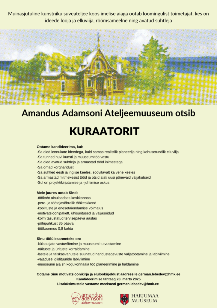 Töökuulutus: Amandus Adamsoni Ateljeemuuseum on kuraatori otsingul